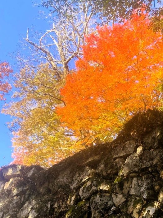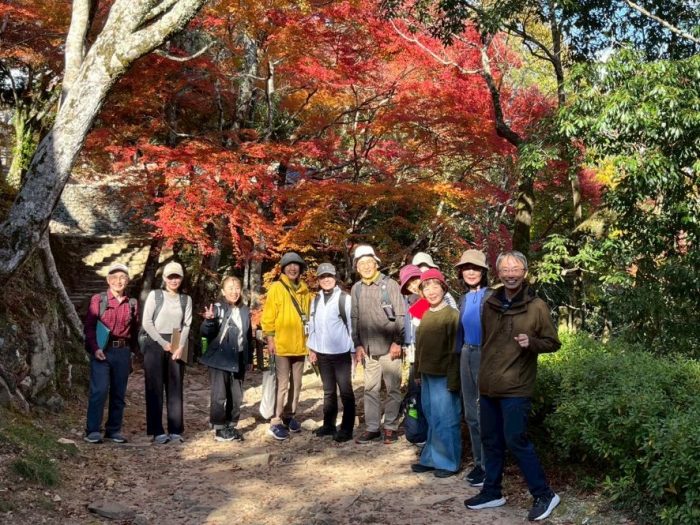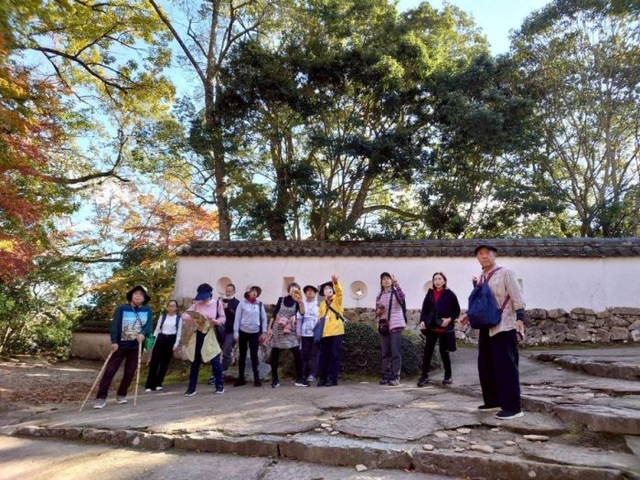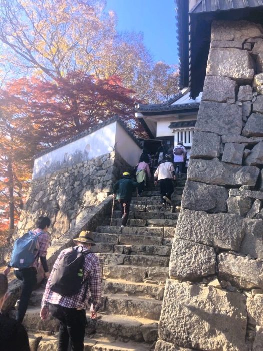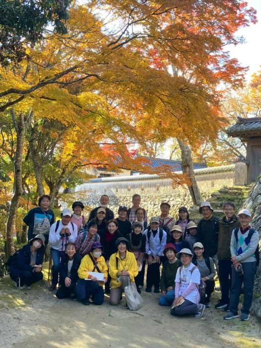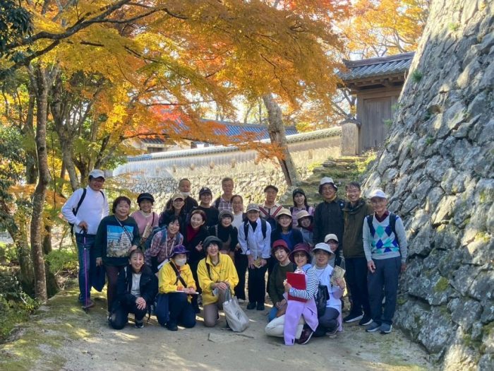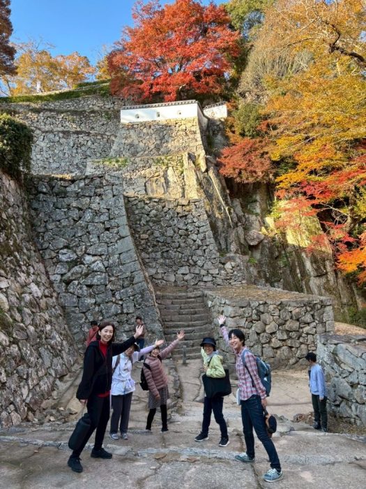 城巡り第2回で備中松山城を現地ベテランガイドの案内で散策しました。現存天守12城の一つである備中松山城は標高430mの臥牛山にあり、敵を寄せつけがたい城郭は紅葉の真っ最中でした。