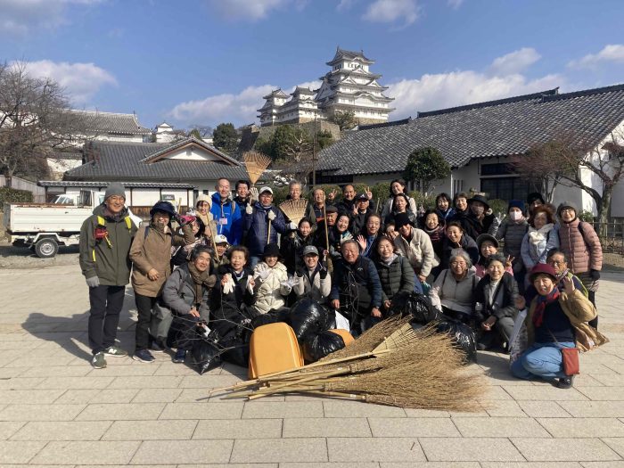 As an annual event held every December, we guide members carried out a cleanup activity at Himeji Castle.
